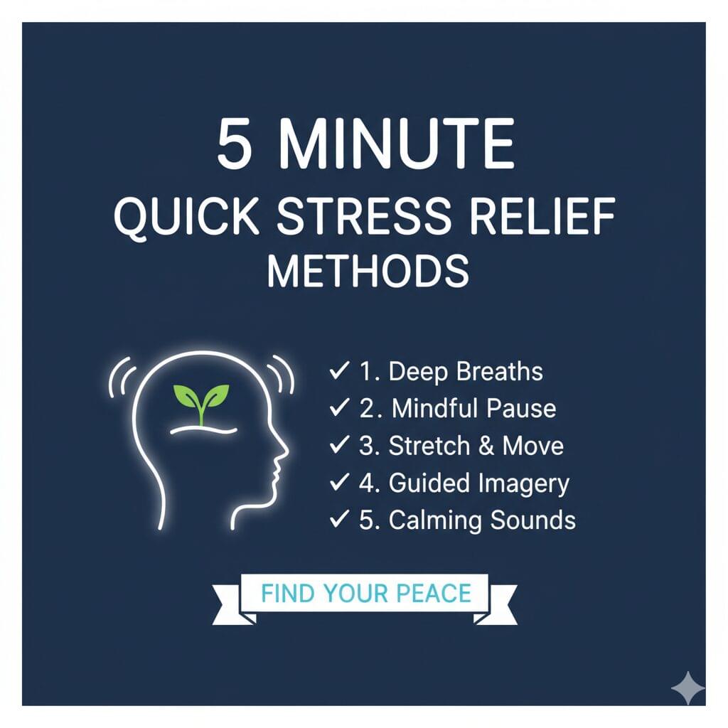 These five minute stress relief methods help you reset your mind, relax your body and protect your well being. Short breaks add energy, clarity and balance to your workday.