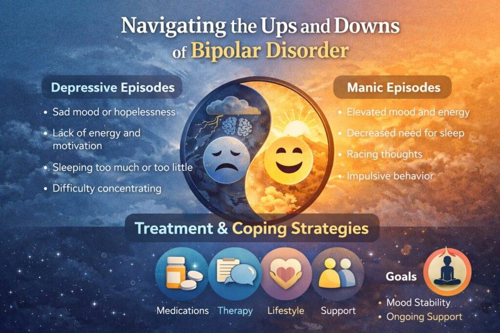 Navigating the Ups and Downs of Bipolar Disorder: Symptoms, Support, and Stability A clear, compassionate guide to understanding bipolar disorder,